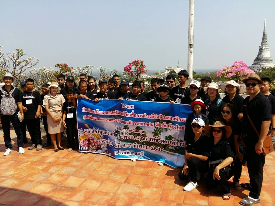 วันที่ 4-7 มีนาคม 2560 เจ้าหน้าที่พร้อมผู้รับฯ เดินทางไปเพชรบุรี เพื่อร่วมโครงการค่ายพัฒนาศักบภาพและทักษะชีวิตเพื่อการดำรงชีวิตอิสระคนพิการโดยลงพื้นที่สถานคุ้มครองคนไร้ที่พึ่งกุ่มสะเก และเข้าศึกษาดูงานและสำรวจสิ่งอำนวยความสะดวยสำหรับคนพิการ ที่พระนครคีรี เขาวัง ช่วงเย็นจัดกิจกรรมคพัฒนาทักษะชีวิตด้านต่างๆและนันทนาการและลงเล่นน้ำทะเล