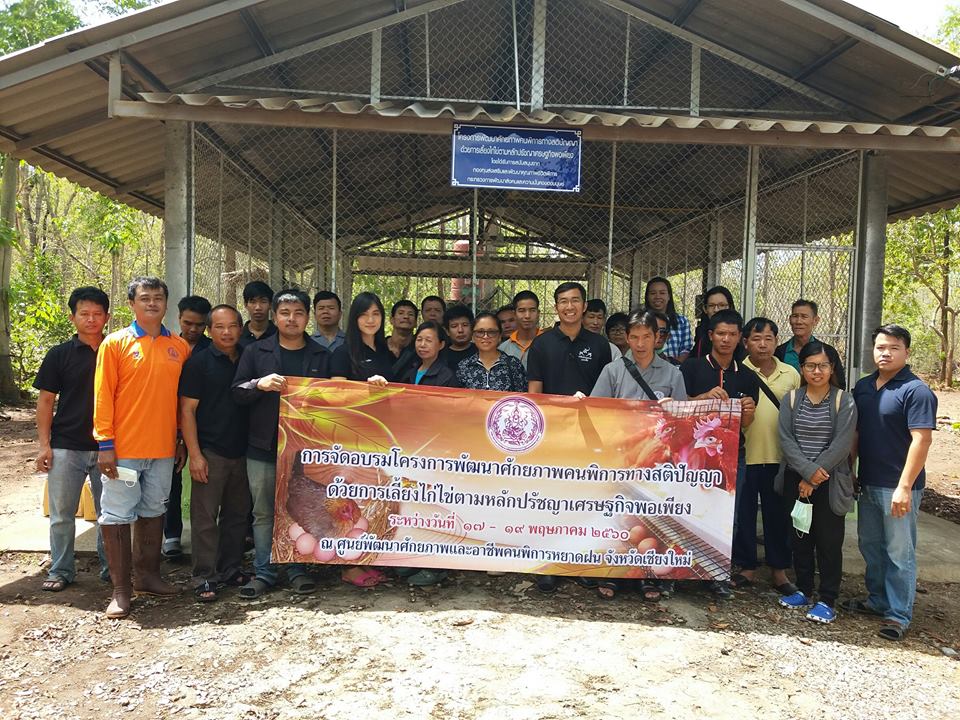 วันที่ 17 พฤษภาคม 2560 นายประณมพร วิชรถาวรชัย ผู้อำนวยการศูนย์พัฒนาศักยภาพและอาชีพคนพิการหยาดฝน จังหวัดเชียงใหม่ เป็นประธานพิธีเปิดโครงการพัฒนาศักยภาพคนพิการทางสติปัญญา ด้วยการเลี้ยงไก่ไข่ตามหลักปรัชญาเศรษฐกิจพอเพียง โดยเป้าหมายเป็นคนพิการภายในศูนย์ฯและคนพิการและครอบครัวในชุมชุน จำนวน 20 คน ระหว่างวันที่ 17 - 19 พฤษภาคม 2560
