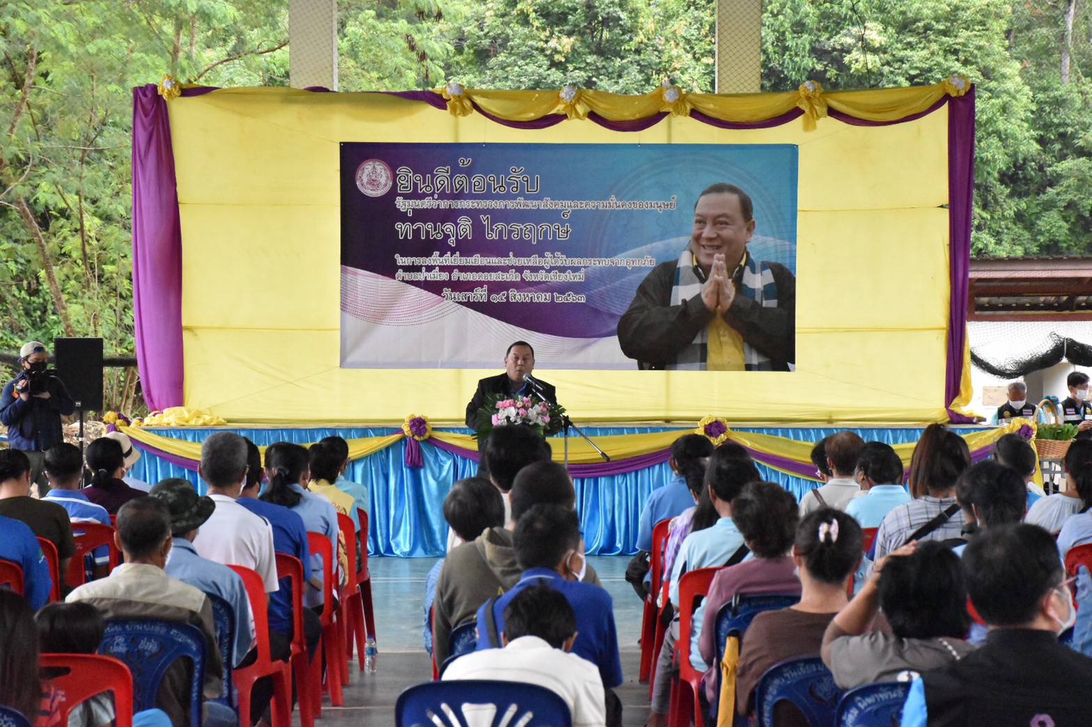 วันที่14 - 15 สิงหาคม 2563 รองอธิบดี พก. ร่วมลงพื้นที่กับคณะผู้บริหารกระทรวงการพัฒนาสังคมและความมั่นคงของมนุษย์ (พม.) นำโดยนายจุติ ไกรฤกษ์ รมว.พม. พร้อมทีม One Home พม. จังหวัดและหน่วยงานที่เกี่ยวข้อง ลงพื้นที่พบปะเยี่ยมเยียนและให้กำลังใจประชาชนและคนพิการที่ประสบปัญหาทางสังคมและได้รับผลกระทบจากอุทกภัย พร้อมมอบเงินสงเคราะห์กรณีฉุกเฉิน จำนวน 195 ครอบครัว ณ บ้านแม่หวาน อ.ดอยสะเก็ด จ.เชียงใหม่ ต่อด้วยการเข้าร่วมพิธีเปิดสถานรับเลี้ยงเด็ก DAY CARE NIGHT CARE เพื่อช่วยเหลือผู้ปกครองที่ต้องประกอบอาชีพทั้งภาคกลางวันและภาคกลางคืน ที่ไม่มีเวลาและไม่สามารถหาสถานที่เลี้ยงดูเด็กได้ โดยให้เป็นโมเดลต้นแบบในการเลี้ยงดูเด็กในครอบครัวเลี้ยงเดี่ยวแห่งแรกในประเทศไทยใน จ.เชียงใหม่ ณ บ้านพักเด็กและครอบครัว จ.เชียงใหม่ จากนั้น รองอธิบดี พก. เข้าร่วมพิธีเปิดโครงการ “อพม.ร่วมใจ ต้านภัยการค้ามนุษย์” โดยมีคณะผู้บริหารกระทรวง พม. และหน่วยงานที่เกี่ยวข้องเข้าร่วมงาน ณ โรงแรมคุ้มภูคำ จ.เชียงใหม่ ต่อด้วยการร่วมลงพื้นที่ตรวจเยี่ยมอาคารที่พักโครงการเคหะชุมชนฯ พร้อมพบปะพูดคุยกับประชาชนกลุ่มเป้าหมายที่อาศัยในโครงการเคหะชุมชนและบริการชุมชนเชียงใหม่ (ไนท์ซาฟารี)