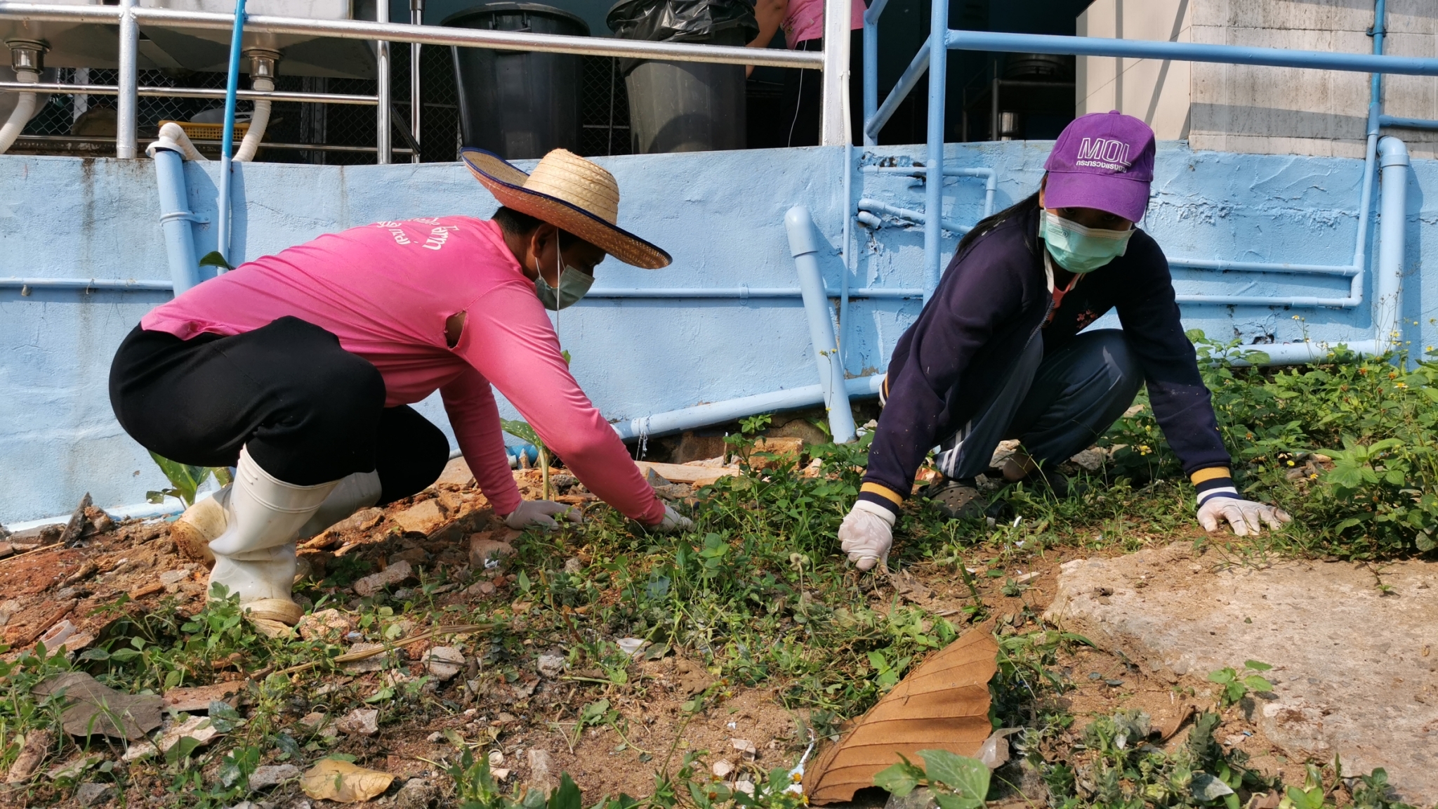 ศูนยฯ หยาดฝน จัดกิจกรรมจิตอาสาประจำเดือนมีนาคม 2565 ร่วมกันกวาดใบไม้ทำความสะอาดเเนวกันไฟบริเวณหลังโรงอาหารเเละโรงซักล้าง