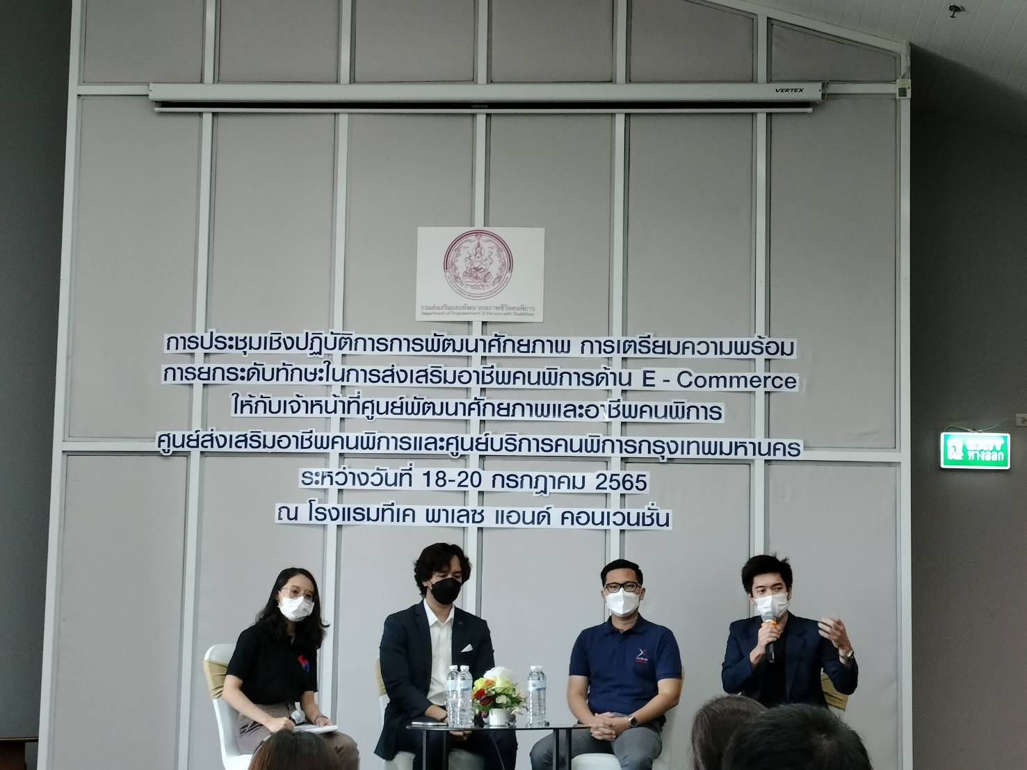 ศูนย์พัฒนาศักยภาพและอาชีพคนพิการหยาดฝนจังหัดเชียงใหม่ ร่วมประชุมเชิงปฏิบัติการ”การพัฒนาทักษะ และการส่งเสริมด้านอาชีพคนพิการ” ให้กับเจ้าหน้าที่ศูนย์พัฒนาศักยภาพและอาชีพคนพิการ ศูนย์ส่งเสริมอาชีพคนพิการ และศูนย์บริการคนพิการกรุงเทพมหานคร โดย พก. ร่วมกับบริษัทวัลแคน โคอะลิชั่น เพื่อนำความรู้ไปประยุกต์ใช้ในการพาณิชย์อิเล็กทรอนิกส์ มีนางพรนิภา มาสิลีรังสี รองอธิบดีกรมส่งเสริมและพัฒนาคุณภาพชีวิตคนพิการ เป็นประธานพิธีเปิด