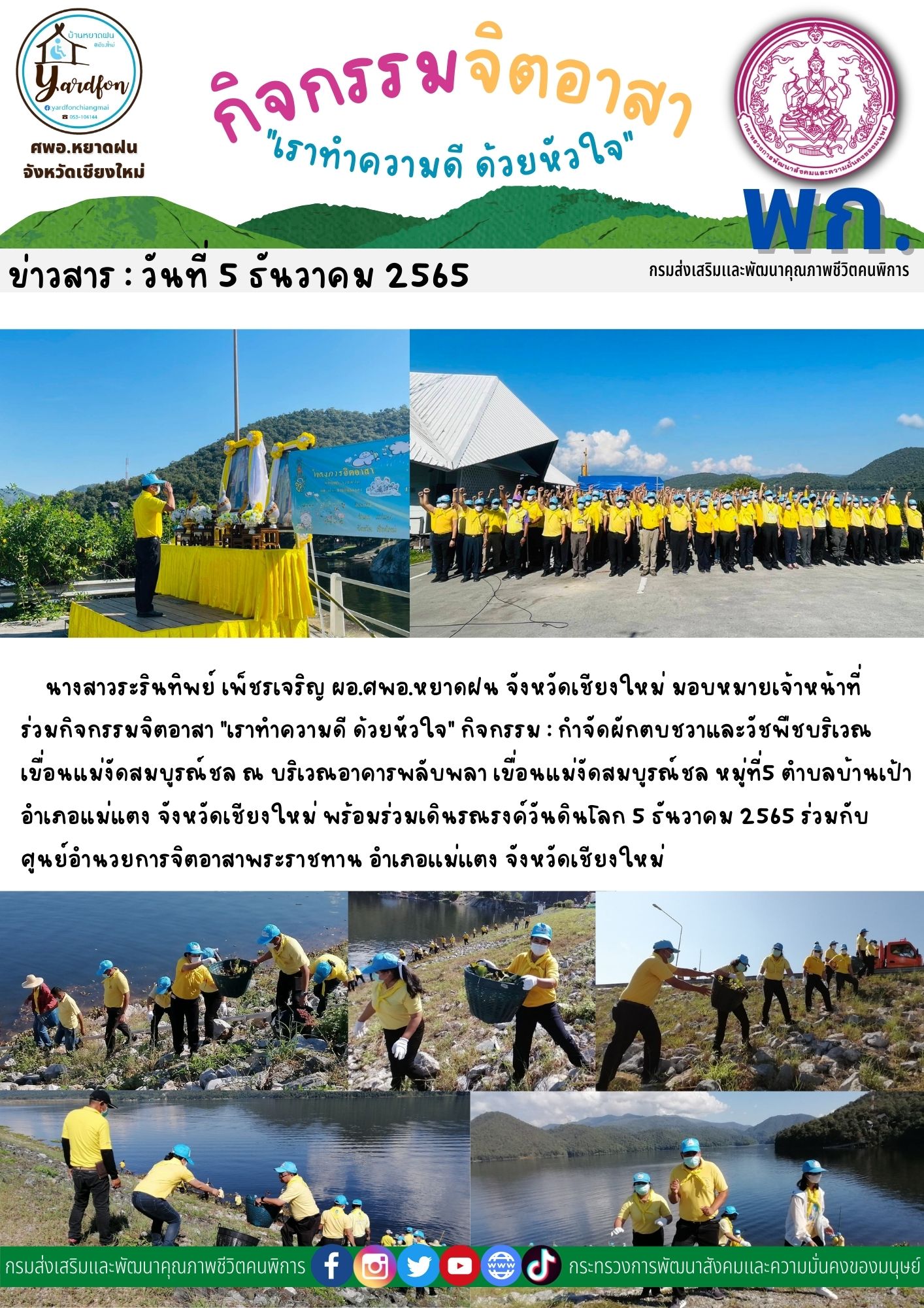 เขื่อนแม่งัดสมบูรณ์ชล หมู่ที่5 ตำบลบ้านเป้า อำเภอแม่แตง จังหวัดเชียงใหม่ พร้อมร่วมเดินรณรงค์วันดินโลก 5 ธันวาคม 2565 ร่วมกับศูนย์อำนวยการจิตอาสาพระราชทาน อำเภอเเม่เเตง จังหวัดเชียงใหม