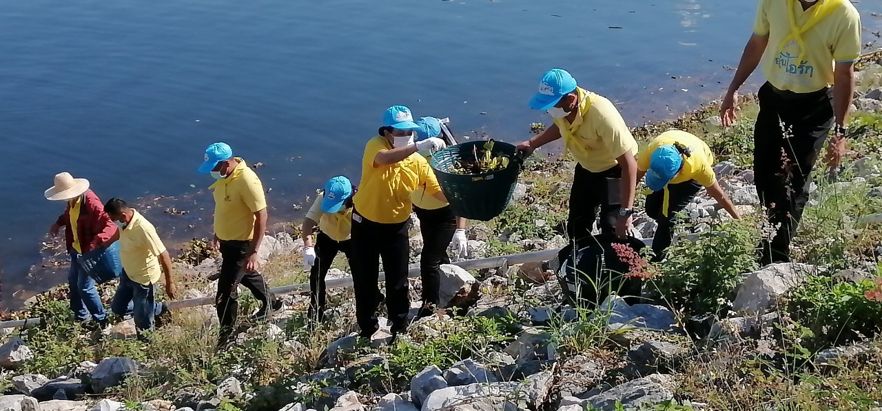 นางสาวระรินทิพย์ เพ็ชรเจริญ ผอ.ศพอ.หยาดฝน จังหวัดเชียงใหม่ มอบหมายเจ้าหน้าที่ ร่วมกิจกรรมจิตอาสา "เราทำความดี ด้วยหัวใจ" กิจกรรม : กำจัดผักตบชวาและวัชพืชบริเวณเขื่อนแม่งัดสมบูรณ์ชล ณ บริเวณอาคารพลับพลา