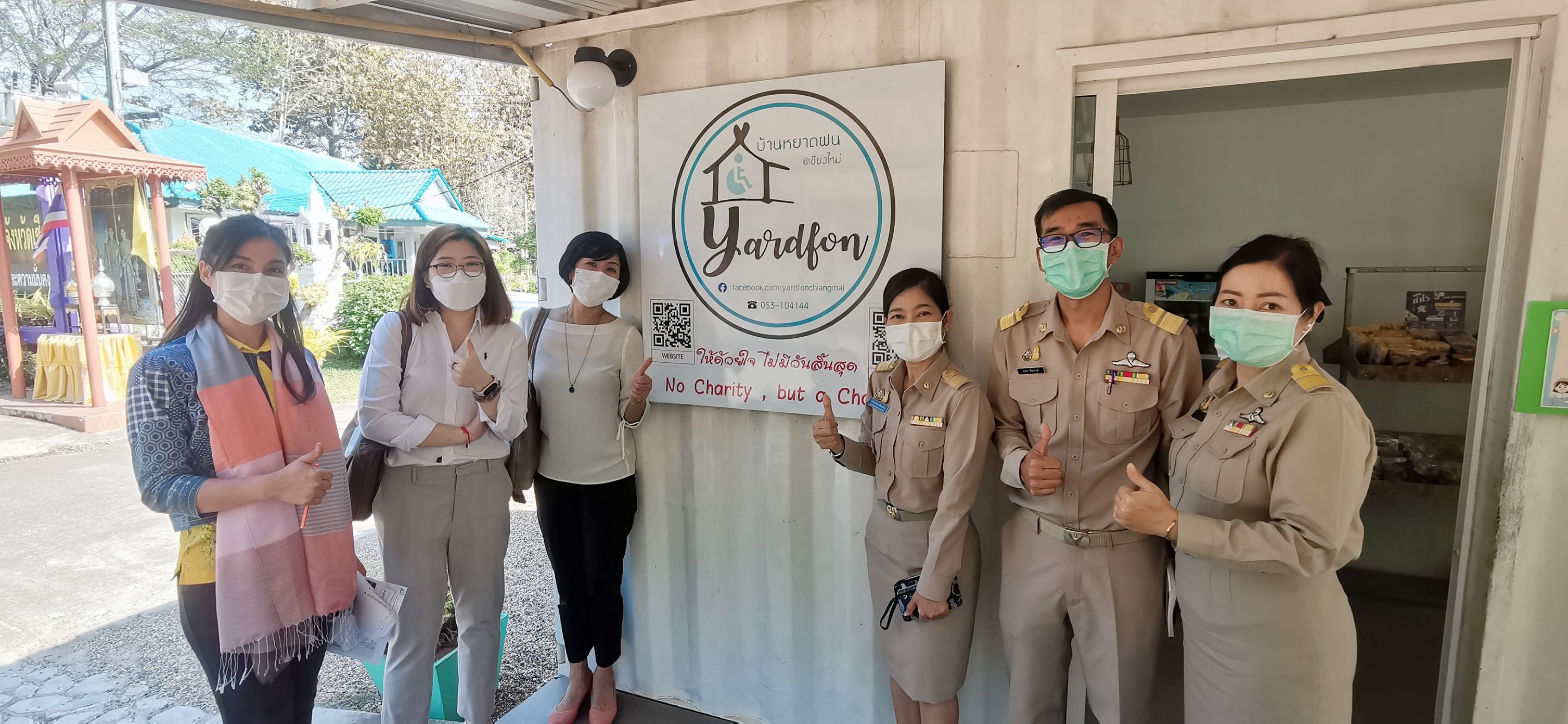 นางสาวระรินทิพย์ เพ็ชรเจริญ ผู้อำนวยการ ศูนย์พัฒนาศักยภาพและอาชีพคนพิการหยาดฝน จังหวัดเชียงใหม่ พร้อมหัวหน้ากลุ่มพัฒนาทักษะอาชีพ หัวหน้ากลุ่มพัฒนาทักษะชีวิต และหัวหน้าฝ่ายบริหารทั่วไปให้การต้อนรับคุณวรรณวรางค์ มหาวงศ์ (Japan International Cooperation Agency) เจ้าหน้าที่องค์การความร่วมมือระหว่างประเทศของญี่ปุ่น (JICA) เพื่อหารือเก็บข้อมูล ในการประเมินความพร้อมเพื่อจัดหาอาสาสมัครญี่ปุ่นมาปฏิบัติงาน ในหน่วยงานของ กรมส่งเสริมและพัฒนาคุณภาพชีวิตคนพิการ พร้อมเยี่ยมชมการเรียนการสอนแผนกเรียนต่าง ๆ ของศูนย์ ฯ