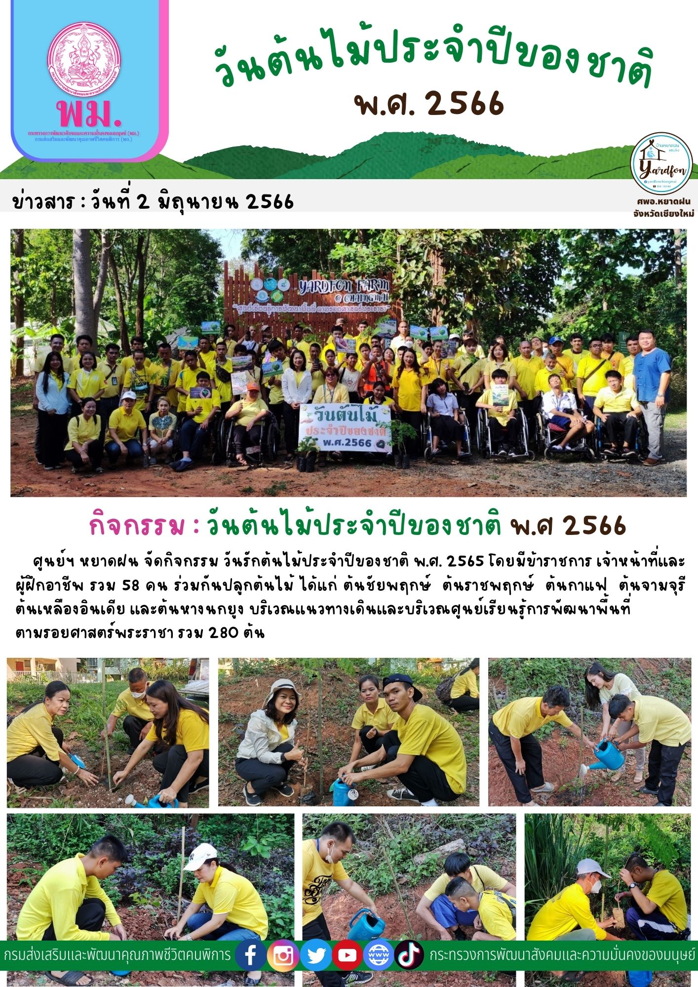ศูนย์ฯ หยาดฝน จัดกิจกรรม วันรักต้นไม้ประจำปีของชาติ พ.ศ. 2565 โดยมีข้าราชการ เจ้าหน้าที่เเละผู้ฝึกอาชีพ รวม 58 คน ร่วมกันปลูกต้นไม้ ได้แก่ ต้นชัยพฤกษ์ ต้นราชพฤกษ์ ต้นกาแฟ ต้นจามจุรี ต้นเหลืองอินเดีย เเละต้นหางนกยูง บริเวณเเนวทางเดินเเละบริเวณศูนย์เรียนรู้การพัฒนาพื้นที่ตามรอยศาสตร์พระราชา รวม 280 ต้น