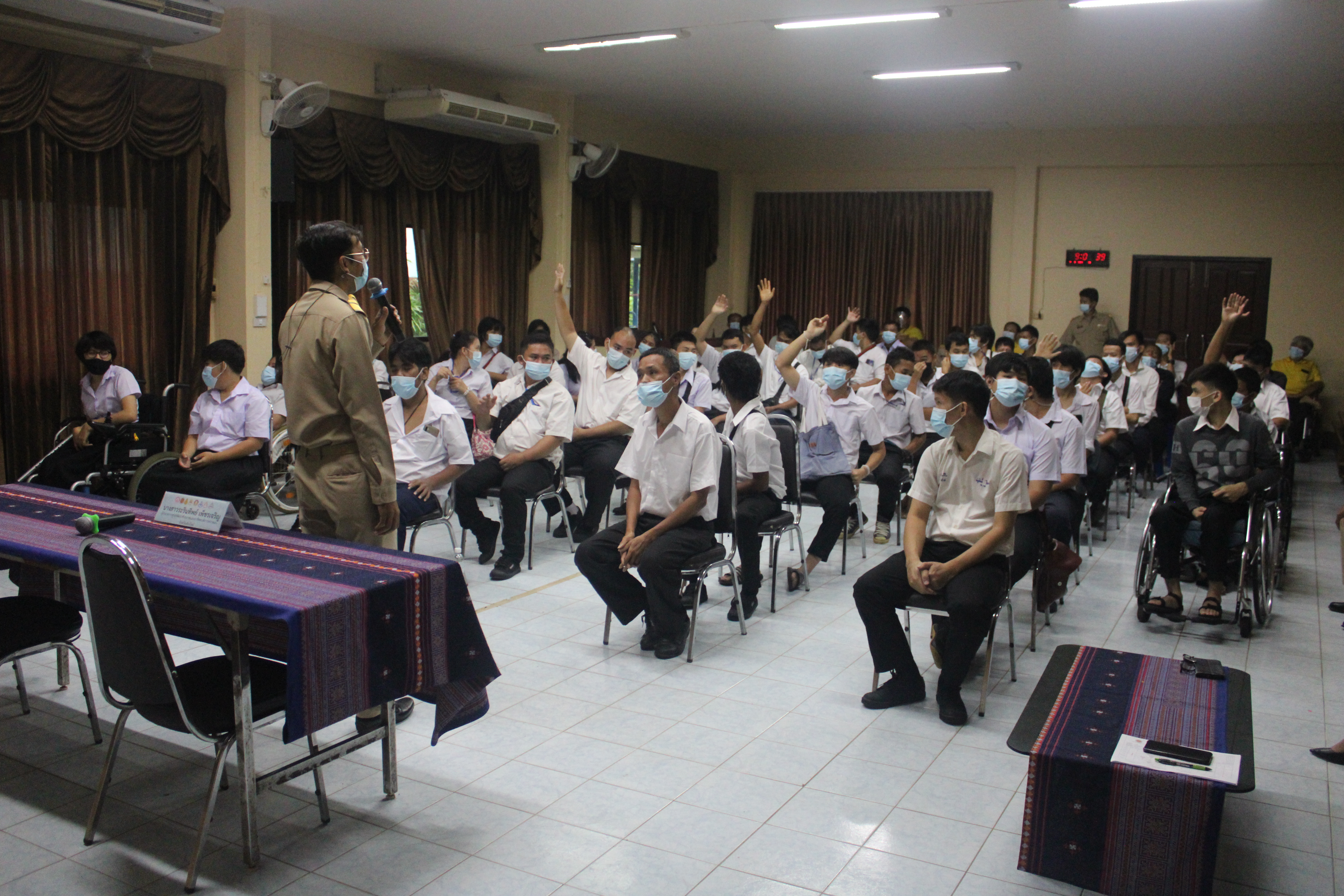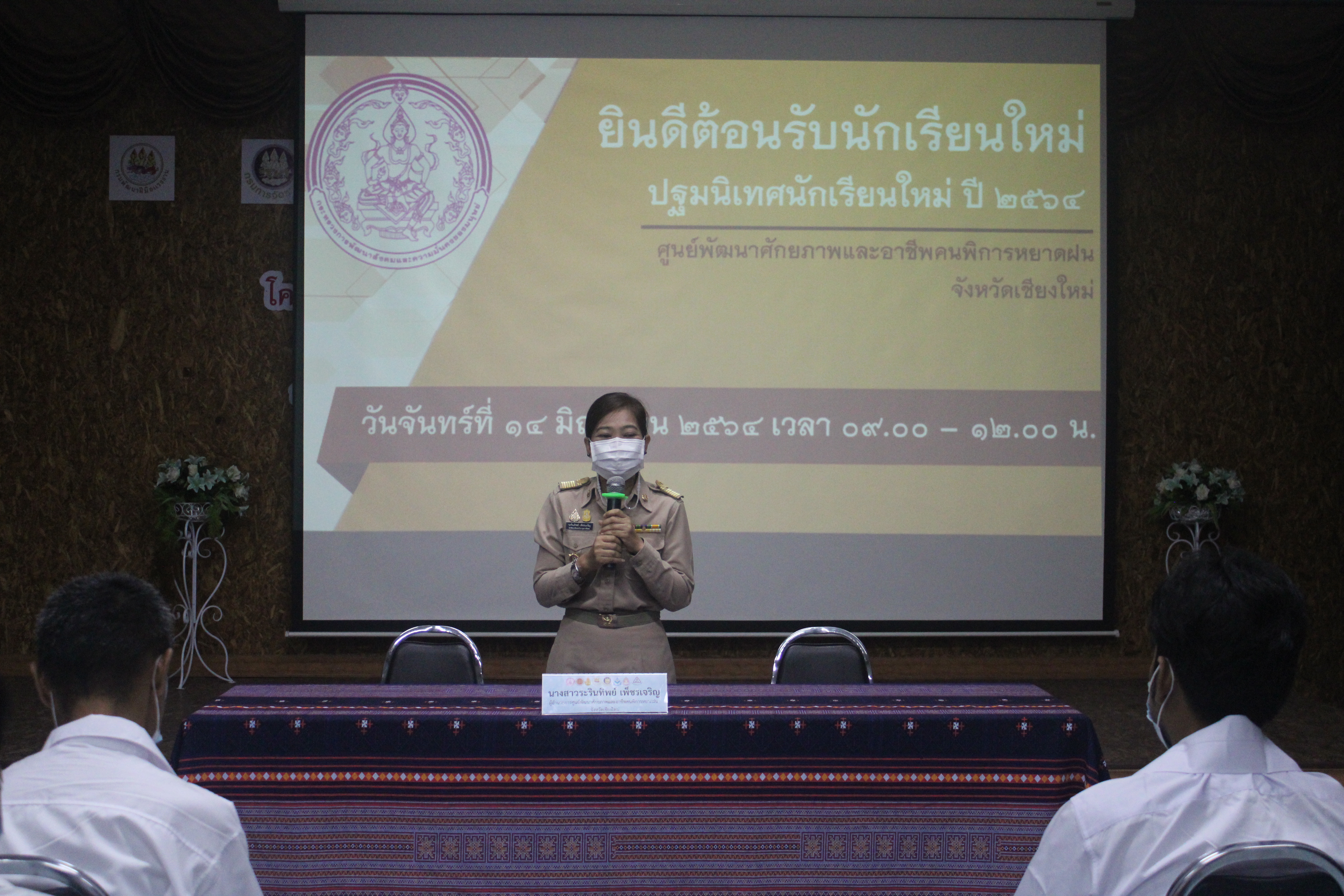 วันที่ 14 มิถุนายน 2564 ศูนย์พัฒนาศักยภาพและอาชีพคนพิการหยาดฝน จังหวัดเชียงใหม่ จัดกิจกรรม"ปฐมนิเทศนักเรียนใหม่ ปี 2564" เพื่อชี้แจงแนวทางดำเนินงาน กฎระเบียบและการอยู่ร่วมกันของศูนย์ฯ รวมถึงได้พบปะเจ้าหน้าที่ ครูประจำแผนก และรับทราบปัญหาเพื่อช่วยเหลือตามกระบวนการสังคมสงเคราะห์ โดยมี นางสาวระรินทิพย์ เพ็ชรเจริญ ผอ.ศูนย์พัฒนาศักยภาพและอาชีพคนพิการหยาดฝน จังหวัดเชียงใหม่ เป็นประธานกล่าวต้อนรับ ทั้งนี้ปฏิบัติตามมาตรการการป้องกันเชื้อไวรัสโคโรนา 2019 (COVID-19)โดยล้างมือด้วยสเปรย์แอลกอฮอล์ สวมหน้ากากอนามัย และเว้นระยะห่างทางสังคม