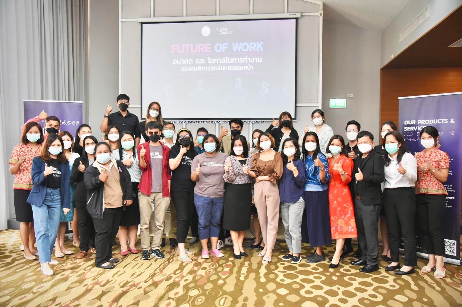 ศูนย์พัฒนาศักยภาพและอาชีพคนพิการหยาดฝนจังหัดเชียงใหม่ ร่วมประชุมเชิงปฏิบัติการ”การพัฒนาทักษะ และการส่งเสริมด้านอาชีพคนพิการ” ให้กับเจ้าหน้าที่ศูนย์พัฒนาศักยภาพและอาชีพคนพิการ ศูนย์ส่งเสริมอาชีพคนพิการ และศูนย์บริการคนพิการกรุงเทพมหานคร โดย พก. ร่วมกับบริษัทวัลแคน โคอะลิชั่น เพื่อนำความรู้ไปประยุกต์ใช้ในการพาณิชย์อิเล็กทรอนิกส์ มีนางพรนิภา มาสิลีรังสี รองอธิบดีกรมส่งเสริมและพัฒนาคุณภาพชีวิตคนพิการ เป็นประธานพิธีเปิด