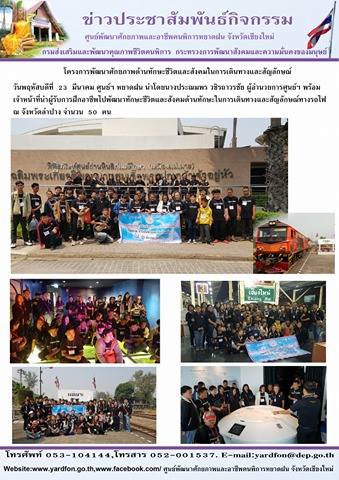 วันที่ 23 มี.ค.2560 ศูนย์ฯหยาดฝน ดำเนินการจัดโครงการทักษะชีวิตและสังคมกิจกรรมการเดินทางและสัญลักษณ์โดยพาผู้รับการฝึกอาชีพเดินทางโดยรถไฟเพื่อไปเยี่ยมชมศึกษาดูงานที่พิพิธภัณฑ์ถ่านหินลิกไนต์แม่เมาะลำปาง