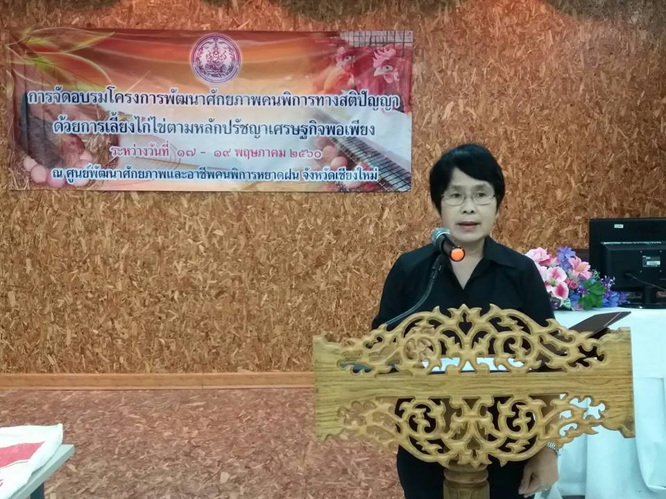 วันที่ 17 พฤษภาคม 2560 นายประณมพร วิชรถาวรชัย ผู้อำนวยการศูนย์พัฒนาศักยภาพและอาชีพคนพิการหยาดฝน จังหวัดเชียงใหม่ เป็นประธานพิธีเปิดโครงการพัฒนาศักยภาพคนพิการทางสติปัญญา ด้วยการเลี้ยงไก่ไข่ตามหลักปรัชญาเศรษฐกิจพอเพียง โดยเป้าหมายเป็นคนพิการภายในศูนย์ฯและคนพิการและครอบครัวในชุมชุน จำนวน 20 คน ระหว่างวันที่ 17 - 19 พฤษภาคม 2560