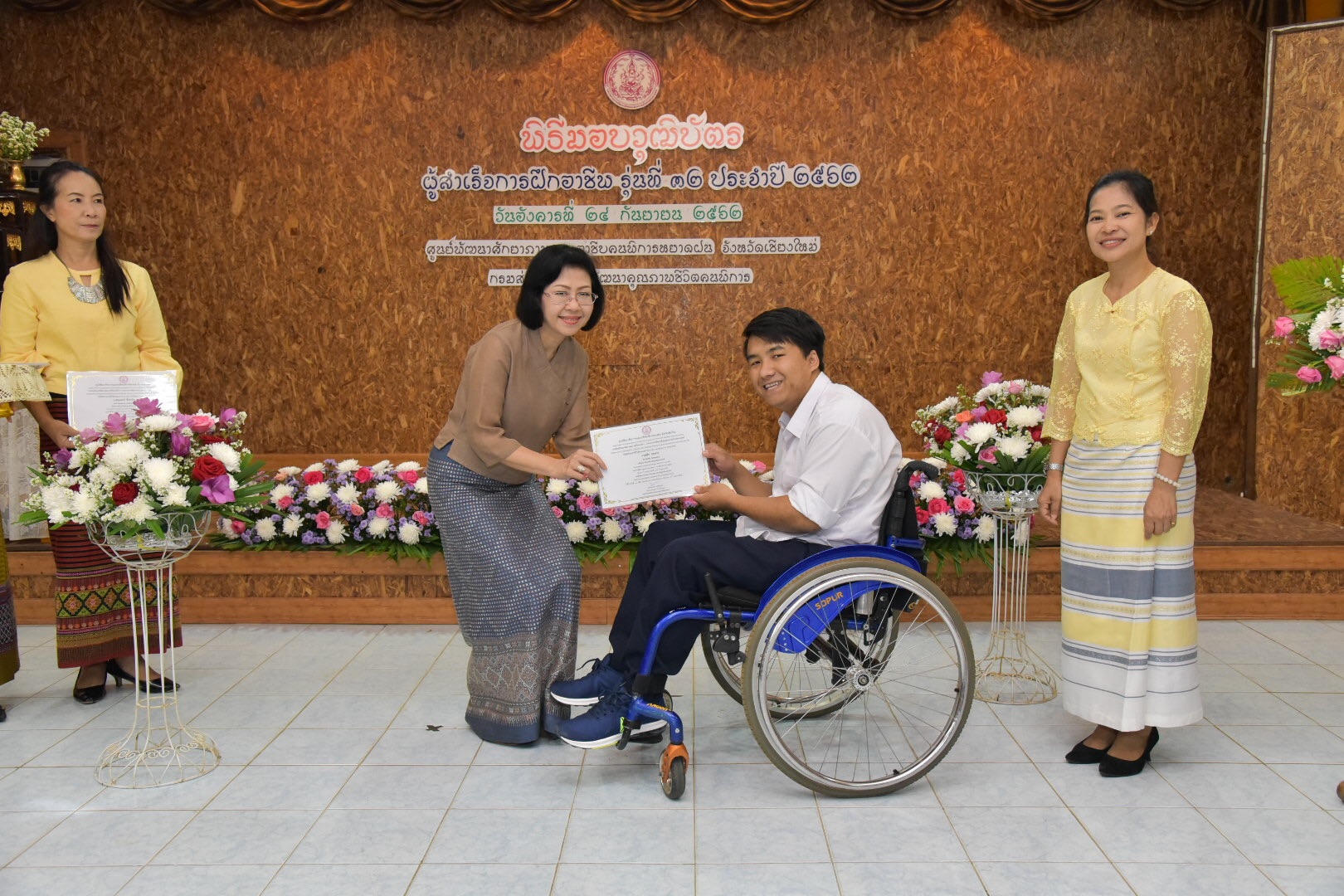 วันอังคารที่ 24 กันยายน 2562 เวลา 13.00 น. ณ ศูนย์พัฒนาศักยภาพและอาชีพคนพิการหยาดฝน จังหวัดเชียงใหม่ นางธนาภรณ์ พรมสุวรรณ อธิบดีกรมส่งเสริมและพัฒนาคุณภาพชีวิตคนพิการ เป็นประธานในพิธีมอบวุฒิบัตรผู้สำเร็จการฝึกอาชีพ รุ่นที่ 32 ประจำปี 2562 เพื่อแสดงความยินดีกับผู้สำเร็จการฝึกอาชีพ จำนวน 20 คน ซึ่ง พก. ในฐานะเป็นองค์กรด้านการส่งเสริมและพัฒนาศักยภาพและอาชีพให้คนพิการ ในเขตพื้นที่ภาคเหนือ 13 จังหวัด ได้ดำเนินการจัดฝึกอาชีพหลักสูตรต่างๆ ได้แก่ คอมพิวเตอร์ อิเล็กทรอนิกส์ ตัดเย็บเสื้อผ้าและงานประดิษฐ์ และเกษตรกรรม โดยมีผู้อำนวยการศูนย์พัฒนาศักยภาพและอาชีพคนพิการหยาดฝน จังหวัดเชียงใหม่ หัวหน้าส่วนราชการ One Home พม.เชียงใหม่ คนพิการ และผู้สำเร็จการฝึกอาชีพ เข้าร่วมในพิธี