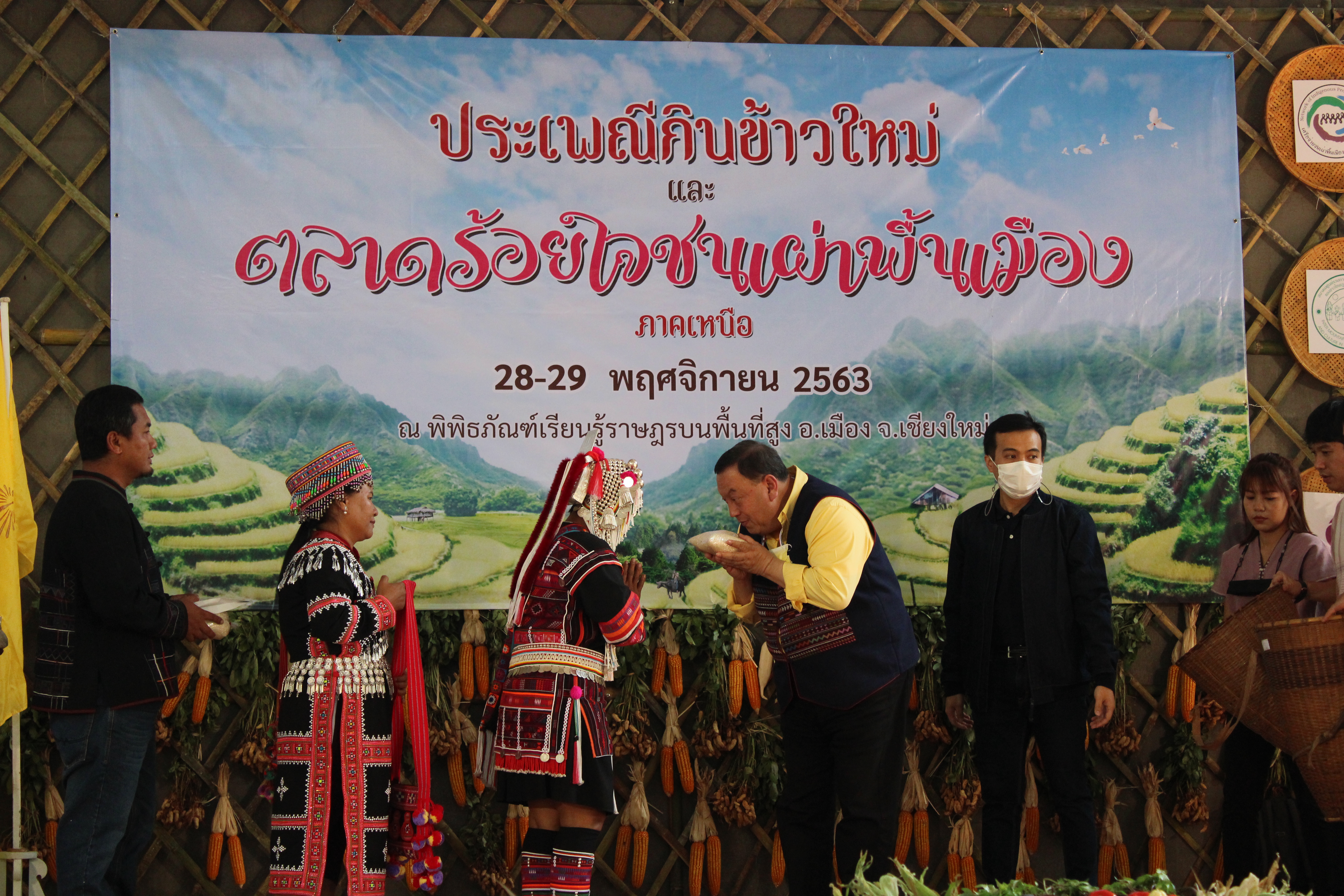 วันเสาร์ที่ 28 พฤศจิกายน 2563 นายจุติ ไกรฤกษ์ รมว.พม. พร้อมทีมผู้บริหารกระทรวง พม. และOne Home พม. จังหวัดเชียงใหม่ ลงพื้นที่จังหวัดเชียงใหม่ และจังหวัดลำพูน ร่วมเป็นประธานในพิธีเปิดโครงการ “ประเพณีกินข้าวใหม่และตลาดร้อยใจชนเผ่าพื้นเมืองภาคเหนือ” เป็นการบูรณาการความร่วมมือระหว่าง เครือข่ายชนเผ่าพื้นเมืองแห่งประเทศไทย (คชท.) สมาคมศูนย์รวมการศึกษาและวัฒนธรรมของขาวไทยภูเขาในประเทศไทย (ศ.ว.ท.) (IMPECT) มูลนิธิเพื่อการประสานความร่วมมือของชนเผ่าพื้นเมืองเอเชีย และภาคีองค์กร เครือข่ายที่เกี่ยวข้อง และเป็นประธานการประชุมทีม One Home และพบปะเครือข่าย พร้อมมอบนโยบาย รับฟังปัญหา อุปสรรค ให้คำแนะนำเพื่อพัฒนาและเพิ่มประสิทธิภาพในการทำงานร่วมกัน และเพื่อเสริมสร้างเครือข่ายของกระทรวง พม. ระดับพื้นที่ในการเฝ้าระวังปัญหาและเร่งช่วยเหลือผู้ประสบปัญหาความเดือดร้อนอย่างใกล้ชิด โดยมีนางสาวอณิรา ธินนท์ รองอธิบดีกรม พก. และทีมเจ้าหน้าที่ศูนย์ฯ หยาดฝน ร่วมลงพื้นที่และประชุมดังกล่าว
