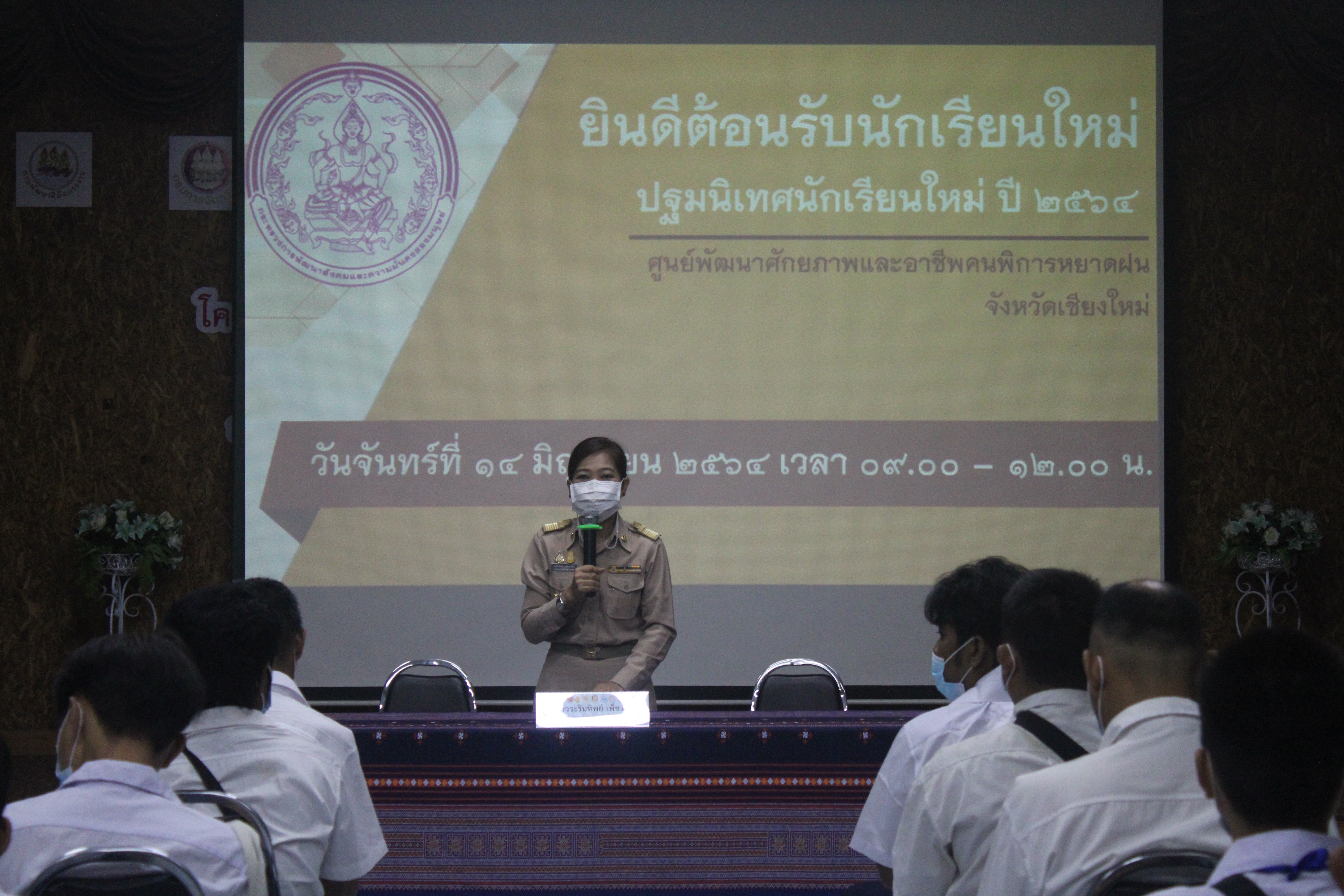 วันที่ 14 มิถุนายน 2564 ศูนย์พัฒนาศักยภาพและอาชีพคนพิการหยาดฝน จังหวัดเชียงใหม่ จัดกิจกรรม"ปฐมนิเทศนักเรียนใหม่ ปี 2564" เพื่อชี้แจงแนวทางดำเนินงาน กฎระเบียบและการอยู่ร่วมกันของศูนย์ฯ รวมถึงได้พบปะเจ้าหน้าที่ ครูประจำแผนก และรับทราบปัญหาเพื่อช่วยเหลือตามกระบวนการสังคมสงเคราะห์ โดยมี นางสาวระรินทิพย์ เพ็ชรเจริญ ผอ.ศูนย์พัฒนาศักยภาพและอาชีพคนพิการหยาดฝน จังหวัดเชียงใหม่ เป็นประธานกล่าวต้อนรับ ทั้งนี้ปฏิบัติตามมาตรการการป้องกันเชื้อไวรัสโคโรนา 2019 (COVID-19)โดยล้างมือด้วยสเปรย์แอลกอฮอล์ สวมหน้ากากอนามัย และเว้นระยะห่างทางสังคม