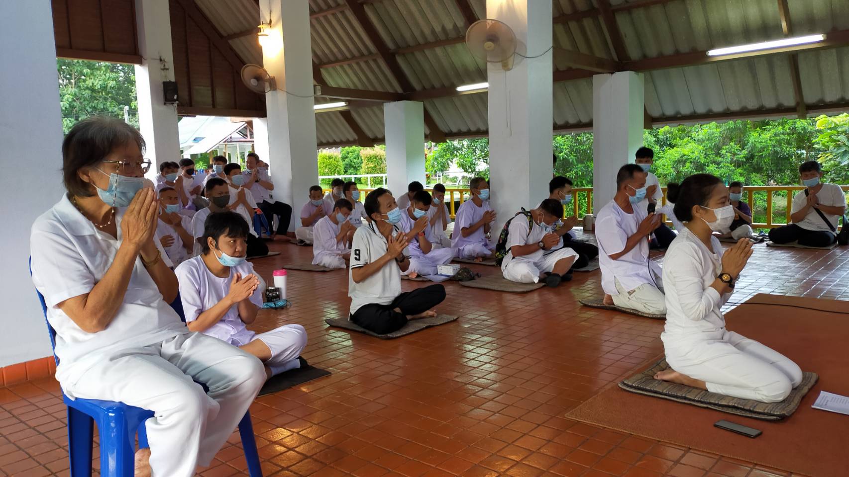 วันที่ 24 และ 25 กรกฎาคม 2564 นางสาวระรินทิพย์ เพ็ชรเจริญ ผอ. ศูนย์พัฒนาศักยภาพและอาชีพคนพิการหยาดฝน จังหวัดเชียงใหม่ มอบหมายกลุ่มพัฒนาทักษะชีวิต จัดกิจกรรม สวดมนต์เย็น นั่งสมาธิและ ทำกรวยดอกไม้เพื่อถวาย เป็นเครื่อง สักการะพุทธบูชา เนื่องในวันอาสาฬหบูชา และวันเข้าพรรษา ซึ่งเป็นวันสำคัญทางพุทธศาสนา โดยมีนักเรียนเข้าร่วมกิจกรรม 61 คน และเจ้าหน้าที่ 5 คน และยังคงมาตรการ ป้องกัน